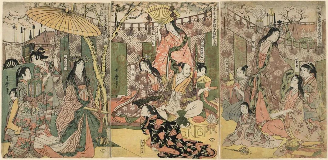 大家都沒什么值得奮斗終生的宏大目標,也覺得沒啥人生價值,那只有喝酒了,此生的享樂就是最好的選擇。隨后,畫家們開始以商人們那煙花柳巷的奢侈生活為題材,叫做“手筆風俗畫”,為浮世繪的前身。