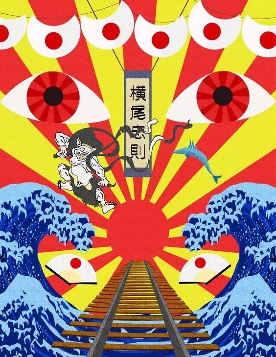 川瀬巴水作品以兩位日本設計大師田中一光和橫尾忠則為例,同樣是參考了浮世繪的色彩、構圖、內容,田中一光拿出了“極簡性冷淡”版本的浮世繪設計,橫尾忠則向當代藝術拿走拼貼的大菜刀,把浮世繪和波普藝術一鍋燉了。