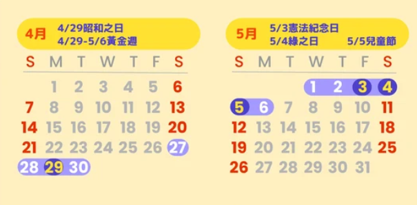4月29日,星期一(昭和日):這是昭和天皇的生日,也是日本的國家法定假日之一。